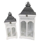 Lanterne Bois Métal 2ème Blanc Argent Carré Cm27X27H63