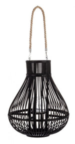 Lanterne Belem noire avec manche en bambou Caractéristiques du produit: bambou jute et corde de verre vendus par lot de 2 et multiples Mesures du produit : diamètre 34 hauteur 41 cm