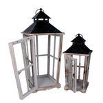 Lanterne rectangulaire en bois blanchi 1-2 cm28x28h65