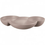 - Le plat hors-d'œuvre est divisé en trois contenants pouvant contenir des arachides et des olives, des légumes frais en julienne et de délicieux morceaux de fromage;