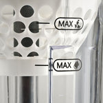 Le hachoir est équipé d'un verre de 700 ml entièrement démontable et rapide à nettoyer, pour un maximum de praticité en cuisine. De plus, il est doté d'une double sécurité de fonctionnement et de pieds antidérapants pour une plus grande stabilité.