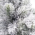 Sapin enneigé. Structure en métal. Matériau des aiguilles en PVC. Base en sac en jute.