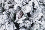 Arbre enneigé. Structure des branches et base en métal. Branches décorées avec des pommes de pin. Matériau des aiguilles PE moulé par injection et PVC conforme à la réglementation française n° 91-1175. Branches effet brosse reproduisant la structure des aiguilles de pin. Ouverture facile en parapluie. À assembler.