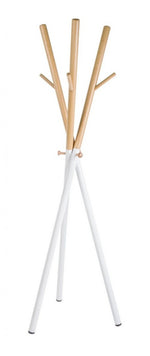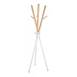 Porte-manteau blanc moderne Bastien Caractéristiques du produit: Tubes en acier peint par poudrage et éléments terminaux en bois de bouleau assembler Mesures du produit : longueur 47 cm 42cm de large 172 cm de hauteur