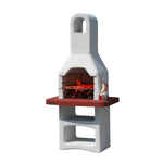 Barbecue avec foyer et plan de travail coloré, réalisé avec des matériaux hautement réfractaires.