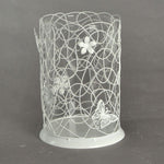 Grand bougeoir en métal blanc avec papillons cm13x13h20