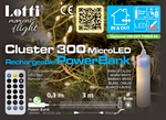 M-P18 Cluster Chain 3m 300 MicroLED BLANC CHAUD Ø1,5mm, Câble Métal Argenté, Télécommande IR max 4m 21 Fonctions, On-Off, 8 effets lumineux sélectionnables avec Luminosité Variable, Minuterie 6-18 heures (peut être désactivée), Batterie Power Bank rechargeable 1800MAh avec câble MicroUSB inclus (chargeur de batterie exclu), IP44 pour utilisation extérieure et intérieure, dimensions 0,1+3m, boîte couleur (XKC Art. FSL M300-3-IR S P18).