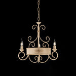 Lustre en fer laqué ivoire à 3 lumières décor décape à frises