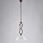 Lustre fer noir rouille une lumière abat-jour verre blanc albâtre 30x h52 cm