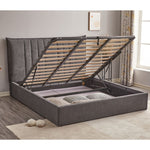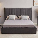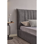 Lit double Saturne gris foncé avec tête de lit coutures verticales