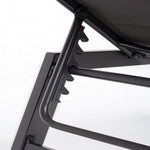 Lit bébé haut en aluminium avec roues Hilde anthracite 32h cm Caractéristiques du produit: Structure en aluminium enduit de poudre (polyester) assise et dossier en textilène 2x1 (avec rembourrage) dossier inclinable en 5 positions vis...