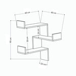 Étagère d'angle murale avec 3 niveaux égaux. Fabriquée en panneau de particules de haute qualité avec un revêtement mélaminé. Sa couleur blanche s'adapte parfaitement à tout type de décoration. Avec une capacité de poids de 20 kg, cette étagère offre amplement d'espace pour organiser vos livres et objets préférés. Ses dimensions sont H 90 x P 22 x L 60 cm, ce qui en fait un choix idéal pour optimiser les coins des pièces. Ajoutez une touche de style et de fonctionnalité à votre espace avec cette élégante étagère d'angle.