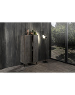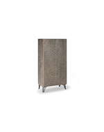 Buffet (70 x 140 H cm) - Ela - MATÉRIAUX: Portes : bois de manguier Structure : Bois de manguier Jambes : Métal COULEURS: Portes : grises structure : grise pattes : noires DIMENSIONS: 40cm X 70cm H. 140cm