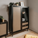 Vitrine noire Vienna53A avec 2 portes et 2 tiroirs avec façades effet osier