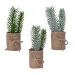 Mini sapin de Noël en sac de jute assorti 5x h15 cm