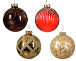 Boule de Noël décorative en verre à effet brillant-opaque-transparent avec motifs de feux d'artifice nervurés, feuilles et mélange de carreaux de couleurs rouge/or Ajoutez une touche d'élégance à votre sapin de Noël avec cette superbe...