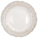 Blanche et beige, cette assiette en grès est agrémentée de doux reliefs décorés à la main, qui la rendent parfaite pour une mise en place délicate et romantique ;
