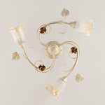Plafonnier en fer Ivoire Or avec verres Ambre Blanc trois lumières 58x h15 cm