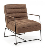 Fauteuil avec accoudoirs et structure en acier et revêtement en simili cuir marron