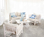 Branches de teck blanchies avec une finition à base de nitrocellulose.