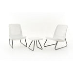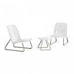 L'ensemble Keter est disponible en blanc. Le produit a été fabriqué en résine de haute qualité, avec des pieds en métal.