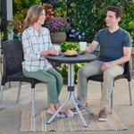 Ajoutez une touche de classe britannique à votre piscine ou à votre terrasse avec l'ensemble de bistrot Chelsea de Keter . Cet ensemble est livré avec deux élégantes chaises de jardin au design rond et une table ronde assortie fabriquée à partir d'un mélange saisissant de plastique dans un cadre en osier et des pieds en métal. Le dessus de table est fait d'un matériau robuste et durable qui est protégé contre les UV, de sorte qu'il ne se décolore pas au soleil.