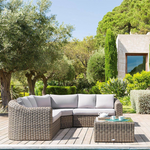 Composition : 1 table + 2 fauteuils + 1 fauteuil d'angle ;