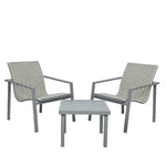 Salon d'extérieur, composé de 2 fauteuils et 1 table basse