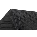 Fabriqué en plastique résistant aux intempéries, le matériau a une finition effet rotin pour les sièges, tandis qu'il s'agit d'un effet bois brossé pour le dessus de la table. La fonction de conteneur que la table basse remplit vous permet de stocker des coussins les jours de pluie, de stocker toutes sortes d'objets pour une option de stockage supplémentaire.