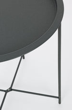 Table basse avec plateau Wissant Anthracite D46 en métal Description: Acier traité pour l'extérieur (e-coating) et thermolaqué (polyester) avec une finition mate ; Emballage sous blister simple ; dessus amovible; Pieds pliables. Dimensions: 46 cm de...
