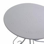 Table ancienne en aluminium blanc lait Caractéristiques du produit: Table en aluminium pour l'extérieur Métal enduit de poudre et traité Pour décorer votre jardin Mesures du produit : 95 cm de diamètre 71,5 cm de haut