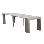 Table console extensible au design audacieux. Cette table console est entièrement pliante, avec un plateau de 2,2 cm d'épaisseur et une finition en orme. La structure est extensible grâce à des guides métalliques et possède des pieds centraux pour une plus grande stabilité. Les dimensions de la table, avec 5 rallonges de 50 cm, varient de 50 à 300 cm de longueur et mesurent 90 cm de largeur et 75 cm de hauteur.