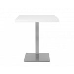 Table haute carrée 75 cm plateau blanc et piètement chrome