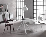 Les dimensions génériques de la table sont de 90 cm X 120/180 cm H. 76 cm, offrant suffisamment d'espace pour accueillir confortablement vos invités. La surface de la table est en céramique sur verre trempé, assurant une durabilité et une résistance exceptionnelles. Les rallonges en céramique sur verre trempé permettent d'allonger facilement la table pour accueillir plus de personnes lors d'occasions spéciales.