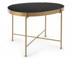 Structure en acier, peinte avec de la poudre époxy. Plateau en verre. Jambes à assembler. Tailles = 63a - 46b - 45h