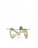 MATÉRIAUX : Dessus : Verre trempé bord poli Pieds / Base : Pierre fossile d'agate blanche Pieds Structure : Contreplaqué marine
