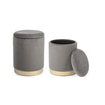 Lot de 2 Poufs en velours avec bac Gris POLINA