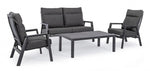 cadre en aluminium thermolaqué (polyester). dossier inclinable en position libre et assise en textilène 1x1. coussins déhoussables en tissu oléfine (100% polypropylène).