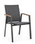 cadre en aluminium, revêtement en poudre (polyester). accoudoirs avec inserts en teck. assise et dossier rembourrés en textilène phifer 1x1. empilable.