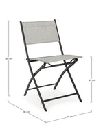 Structure en acier, traitée pour l'extérieur par sablage et peinte à la poudre époxy. Assise Et Dossier En Textilène 2X1 (540G/M2). Pliant Tailles = 46a - 58b - 80h - 43h