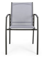 Structure en aluminium, revêtement en poudre (polyester). Assise Et Dossier En Textilène 2X1. Empilable. Mesures = 56.5a - 61b - 87h - 46.5h1 - 66h2