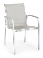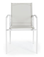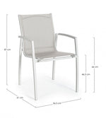 Structure en aluminium, revêtement en poudre (polyester). Assise Et Dossier En Textilène 2X1. Empilable. Mesures = 56.5a - 61b - 87h - 46.5h1 - 66h2