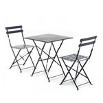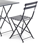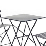 Ensemble de balcon composé d'une table carrée en fer de couleur anthracite 60x60x69 cm et de 2 chaises pliantes peu encombrantes.