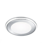 Il faretto rotondo da incasso della serie AURA di Trio Lighting é realizzato in plastica finitura cromo, con alette laterali che facilitano l'installazione nei controsoffitti in cartongesso.