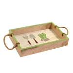 Plateau en bois vert blanc avec poignées rectangulaires en corde cm30x20h5
