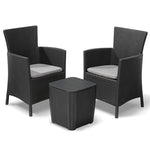 Comprend deux chaises et une table de rangement