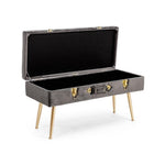 Banc de velours avec récipient gris de la Polina 80x34x H42 cm