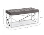 Banc Rayan en velours gris 97x44 cm