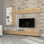 Mur équipé avec structure blanche et portes en chêne