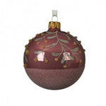 Boule de Noël en verre Rosa Velvet avec branche de baies 8 cm